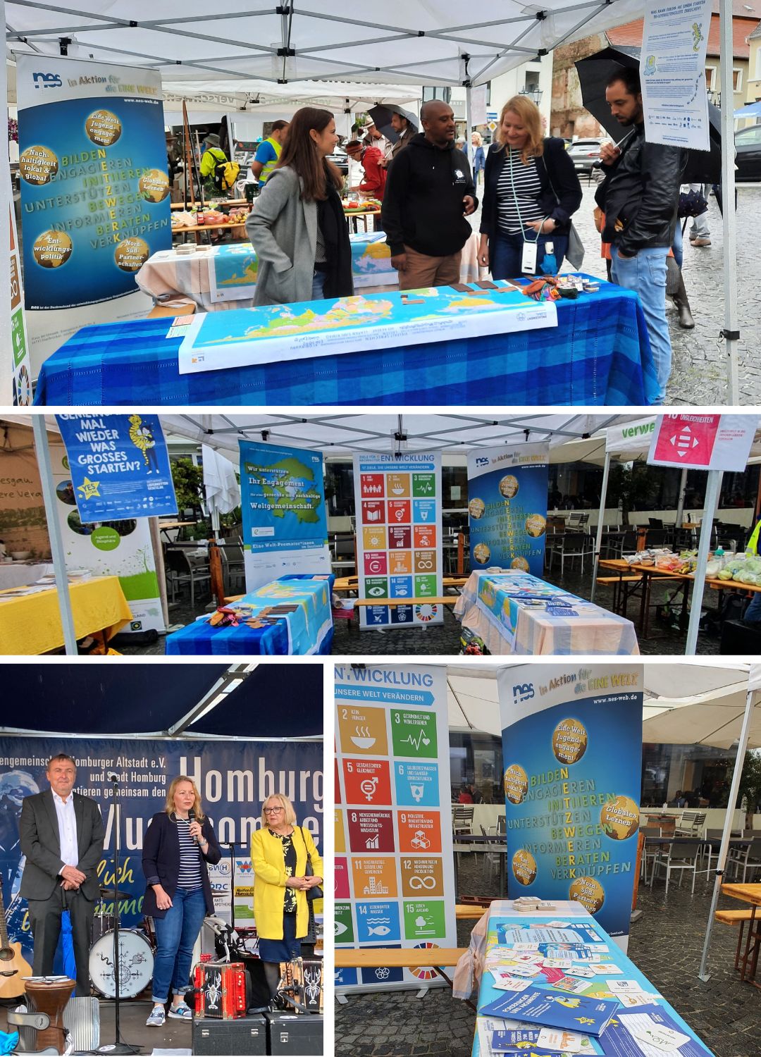 Der Homburger Fairtrade Markt stand ganz unter dem Motto "regional-global-fair" mit Schwerpunkt auf die drei globalen Nachhaltigkeitsziele (SDG's) „Keine Armut“, „kein Hunger“ und „Nachhaltiger Konsum und Produktion“. Unser Bildungsteam konnte Projekte und Bildungsangebote einbringen und vorstellen. Auch das Netzwerken mit anderen Initiativen und Vereinen aus der Einen-Welt-Arbeit und der Nachhaltigkeit, stand an diesem Tag im Vordergrund. Auch Kontakte in die saarländischen Politikszene, wie an diesem Tag mit der saarländischen Bildungsministerin Frau Streichert-Clivot sind immer wieder wertvoll für die kommende Arbeit.