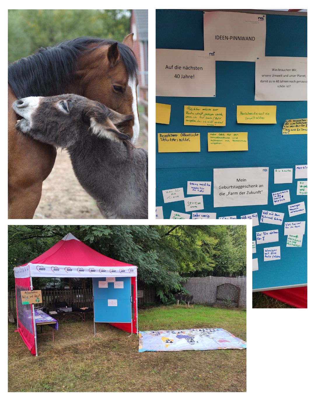 Bei der Kinder- und Jugendfarm in Saarlouis wurde das NES von Bildungsreferentin Kirsten Dembowski vertreten. Seit mehreren Jahren kooperiert das Netzwerk mit der Farm, einem Treffpunkt für Menschen aller Altersklassen, insbesondere aber Kinder und Jugendlichen, um sich mit Natur und Tier auseinanderzusetzen unter Anleitung der dortigen Mitarbeitenden. Mit Kindern und Erwachsenen kam Kirsten über das Weltverteilungsspiel ins Gespräch. Es entstand eine Ideenwand mit vielen guten Wünschen für die Farm und unser aller Zukunft, die am Ende an die pädagogische Leiterin Anke Wildner übergeben wurden.