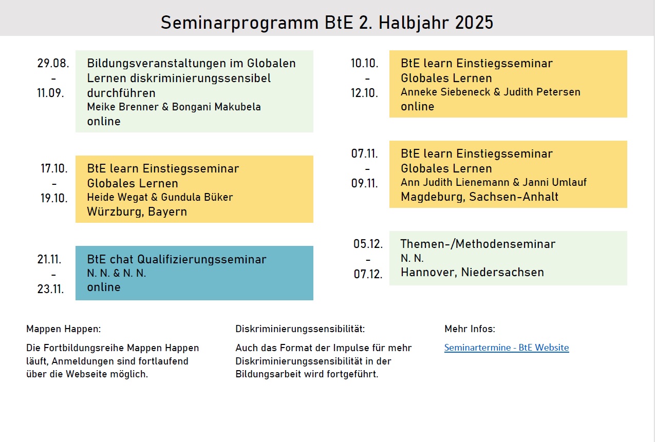 Im Herbst starten wieder Einstiegsseminare von Bildung trifft Entwicklung