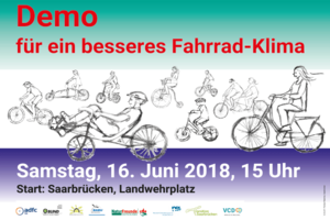 Für ein besseres Fahrrad-Klima. Unter diesem Motto veranstaltet ein Aktionsbündnis aus BUND, Energiewende Saarland, NABU, Naturfreunden, Netzwerk Entwicklungspolitik im Saarland (NES), Transition Town Saarbrücken, VCD und nicht zuletzt dem ADFC am Samstag, den 16. Juni, eine große Fahrrad-Demonstration.