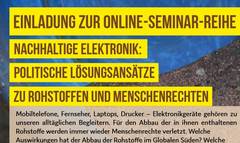 Online-Seminar-Reihe: Nachhaltige Elektronik: Politische Lösungsansätze zu Rohstoffen und Menschenrechten