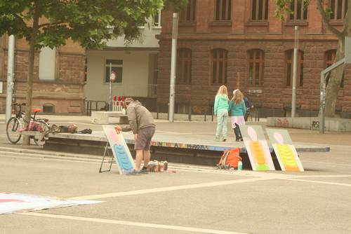 Weitere künstlerische Unterstützung kam von Alexander Karle, der den Landwehrplatz kurzerhand zu seinem Atelier umfunktionierte und so den gesamten Zeitraum über den Tag malend begleitete.