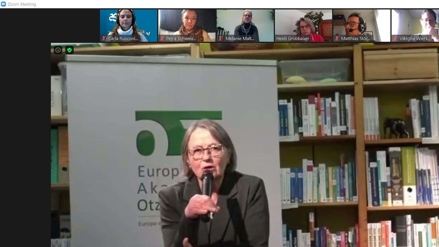 Die Teilnehmenden konnten sich mittels interaktiver Online-Tools aktiv beteiligen und vernetzen. Eva Wessela, Studienleiterin an der Europäischen Akademie Otzenhausen moderierte die Veranstaltung.