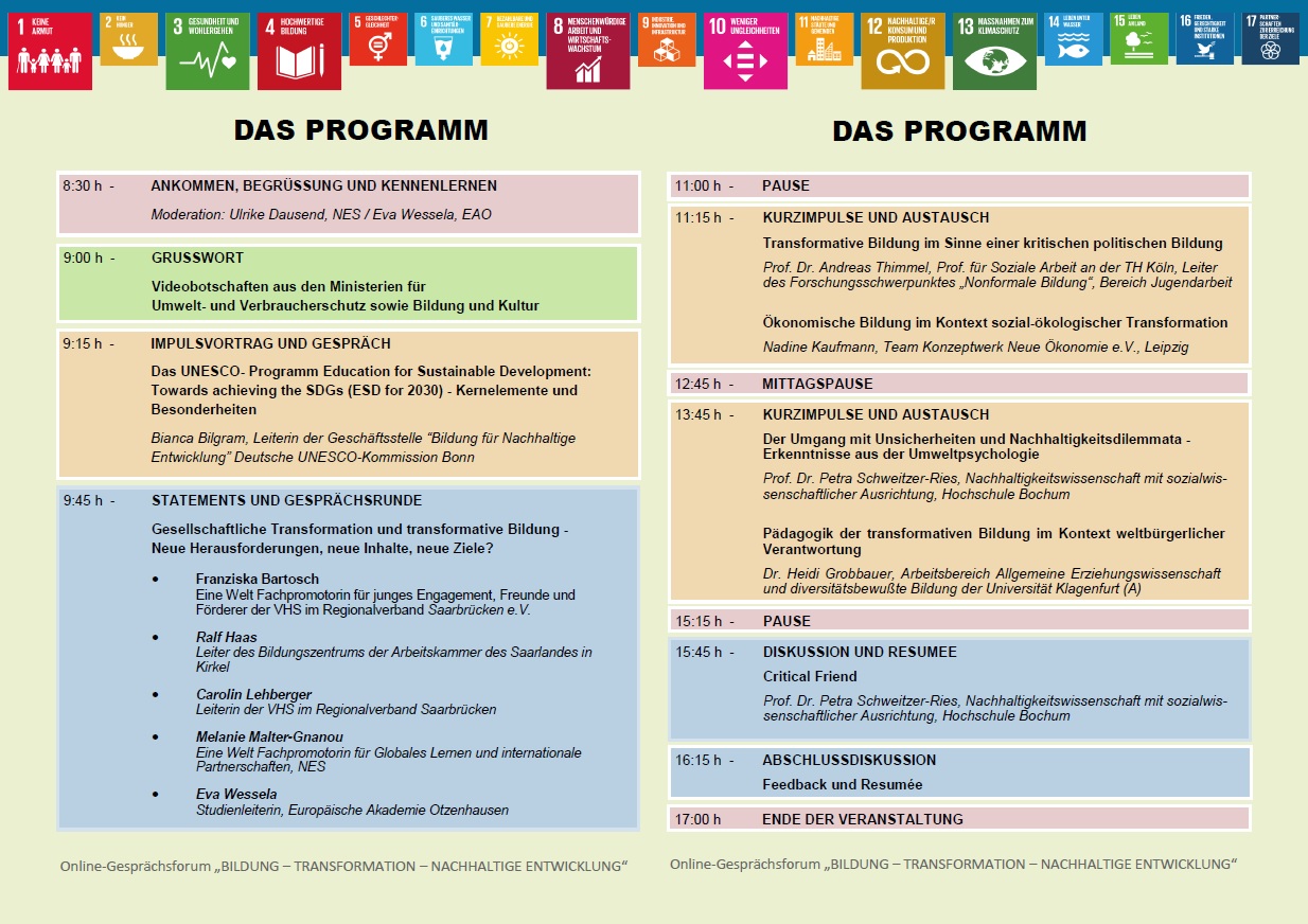Die sozial-ökologische Transformation der Gesellschaft erfordert einen tiefgreifenden Wandel im Denken und Handeln der Menschen. Der Bildung kommt deshalb eine Schlüsselrolle zu. Die UNESCO startete dazu 2020 ein neues Rahmenprogramm: „ESD (Education for Sustainable Development) for 2030“.