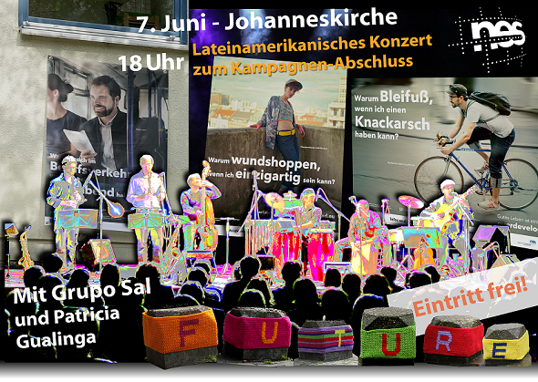 nach einer kurzen Revue über die Kampagne „Gutes Leben ist einfach", die von April bis Juni in Saarbrücken umgesetzt wurde, geht es bei diesem Abschlussevent nun mit beschwingten lateinamerikanischen Tönen und den mitreißenden Erzählungen von Patricia Gualinga „von Saarbrücken in die Welt".